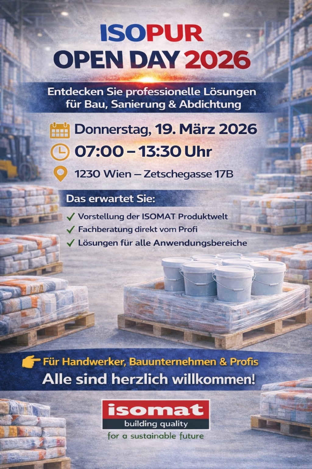 Wir kombinieren ISOMAT-Standardsortiment mit rascher Abholung in Wien und persönlicher Beratung für Profis. Von Bauwerksabdichtung bis Oberflächenschutz – wir sind Ihr Partner für hochwertige Ergebnisse.